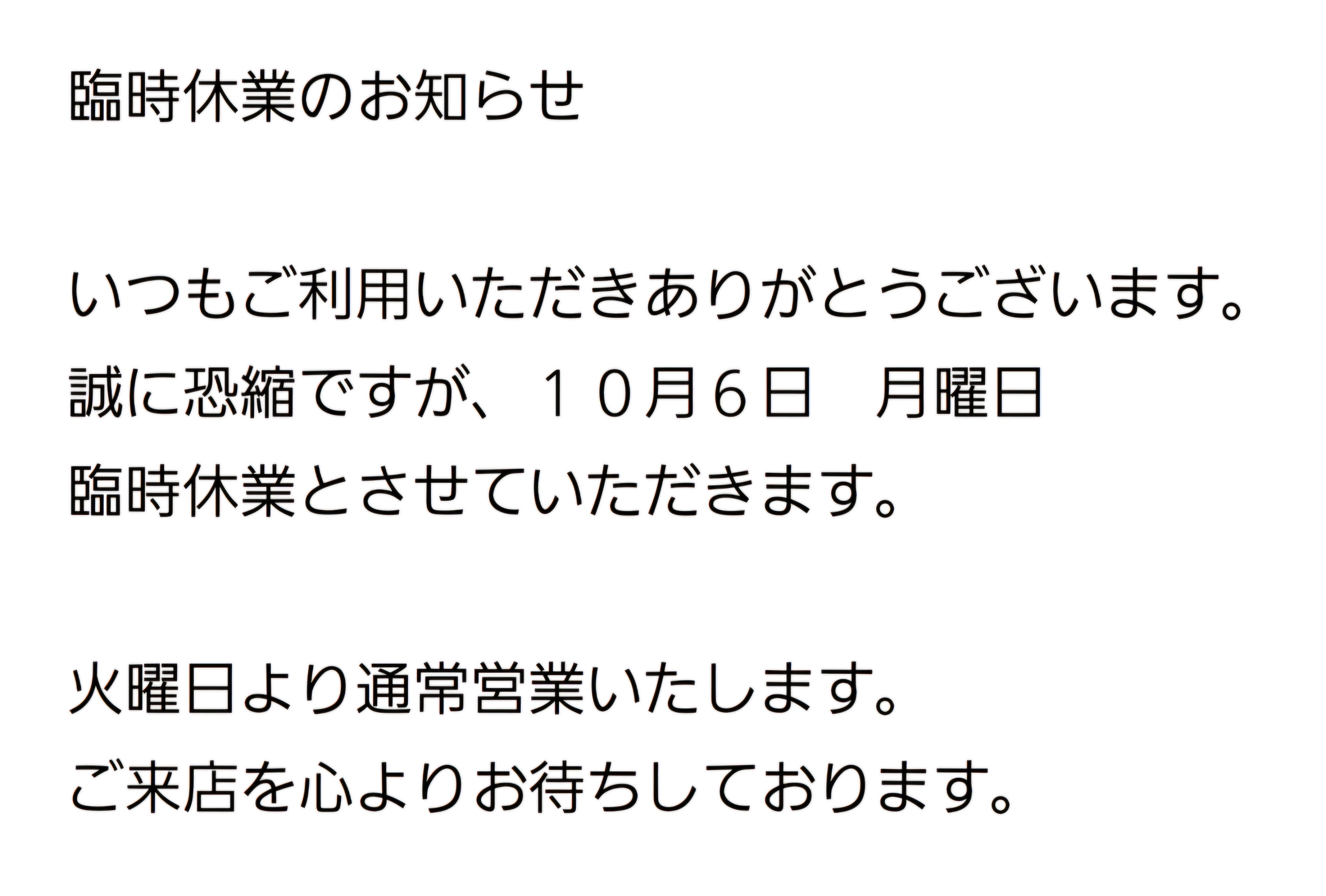 【定 休 日】 日曜日 ・ 祝日の月曜日
